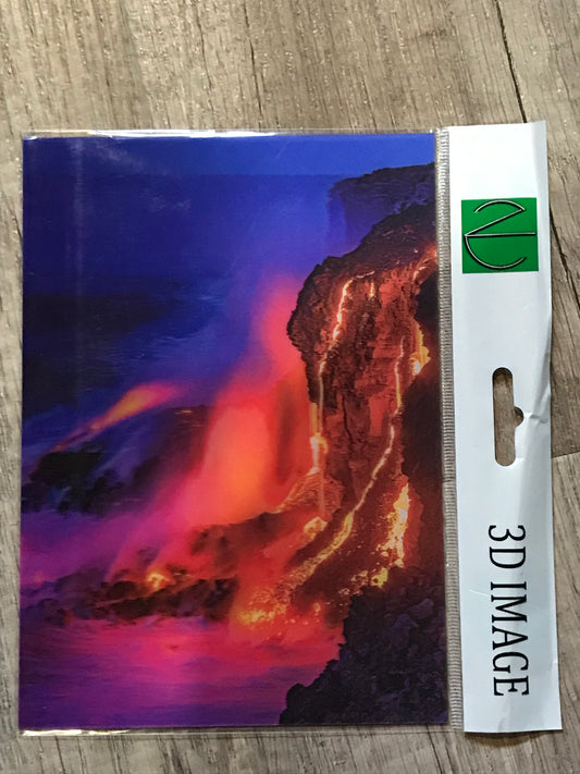 LAVA FLOW FROM HAWAIIAN MOUNTAIN INTO OCEAN 3D LENTICULAR FLAT 5" X 7"