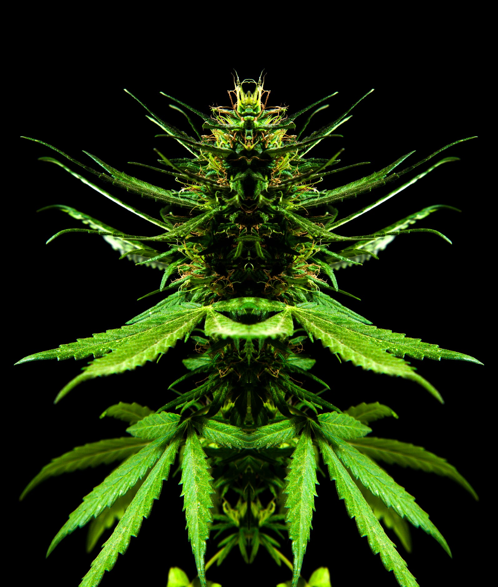 Ganja Prime is one of two mirror-image abstractions in our collection. You’ll easily get drawn into this dramatically stylized print of a mature female cannabis plant.